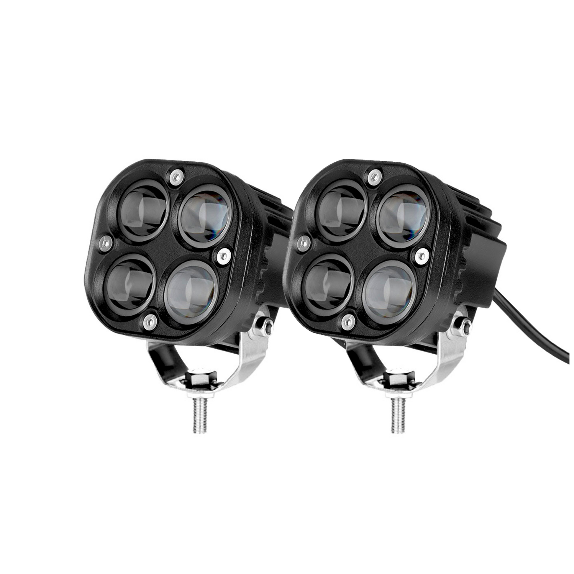 Este faro cuadrado bicolor con 4 lupas ofrece un campo de visión ampliado para facilitar la  conducción de noche.