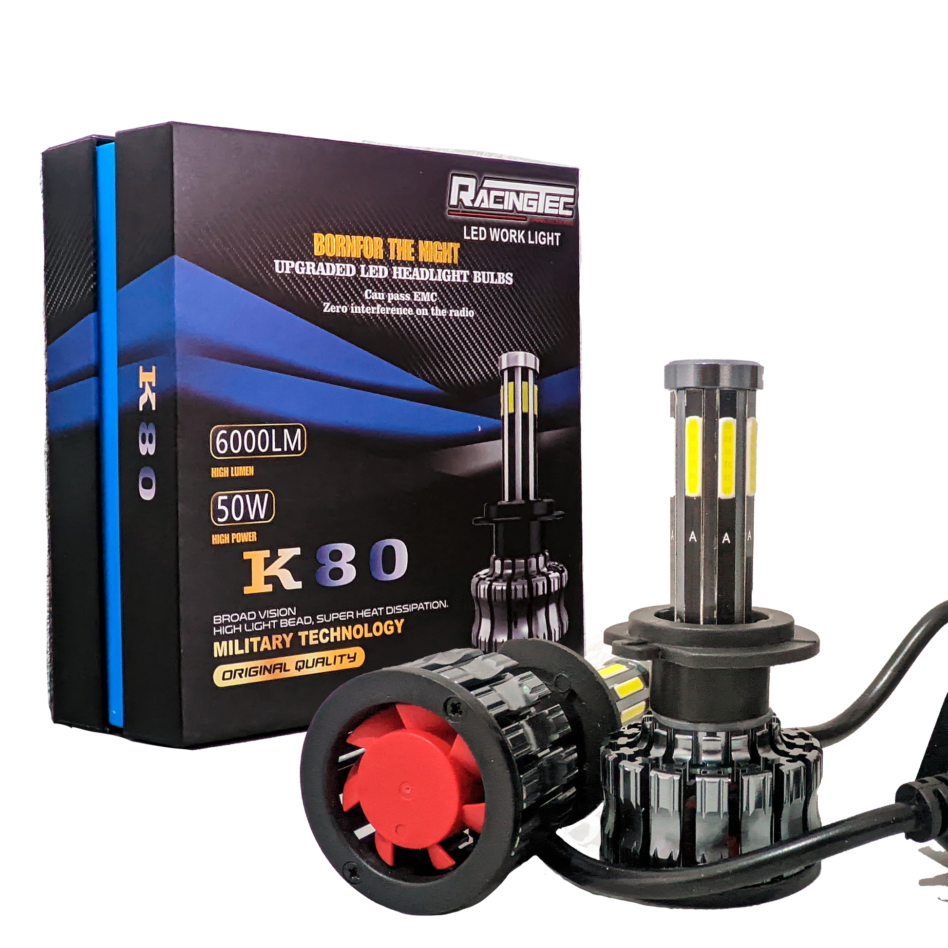 Kit de Focos Led de 8 caras marca RacingTec Para faro Principal, luz para carro de 6000lm 50w Potente iluminación perfecta para la carretera, hoyos, noche